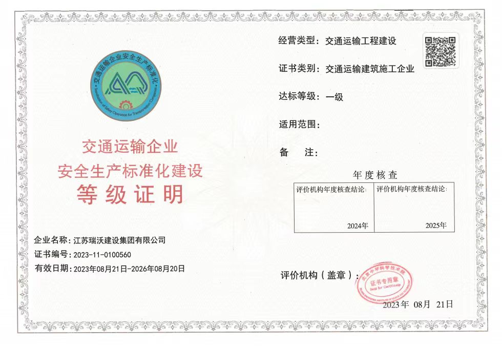 江蘇瑞沃建設(shè)集團(tuán)有限公司成立于2007年,是一家以市政、交通工程建設(shè)為主導(dǎo),集房屋建筑、交通安全設(shè)施、城市道路照明工程、電力工程、隧道工程、航道工程及投融資為一體的綜合性企業(yè)。企業(yè)注冊(cè)資本60000萬(wàn)元,現(xiàn)有各類技術(shù)人員580人,其中中、高級(jí)以上人員498人,注冊(cè)類人員268人,一、二級(jí)建造師166人。公司榮獲“江蘇省建筑業(yè)優(yōu)秀企業(yè)”、“江蘇省五一勞動(dòng)獎(jiǎng)狀”,連續(xù)多年被評(píng)為“揚(yáng)州市先進(jìn)企業(yè)”、“江蘇省建筑業(yè)百?gòu)?qiáng)企業(yè)”,連續(xù)八年蟬聯(lián)百?gòu)?qiáng)企業(yè)基礎(chǔ)設(shè)施類第一名。